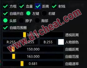 自瞄功能:支持頭部、脖子、胸口多部位鎖定,自瞄速度可自由調整,並可顯示自瞄範圍